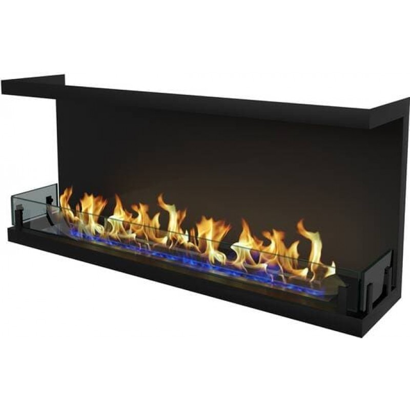 Угловой очаг открывает огонь на две стороны и имеет большой угол обзора. На каком уровне от пола его лучше расположить? Повыше, если хотите любоваться пламенем из разных уголков комнаты, и пониже (но не менее 20 см от пола), если планируете поставить рядом кресло и проводить в нем самые приятные мгновения, любуясь неповторимым танцем пламени.