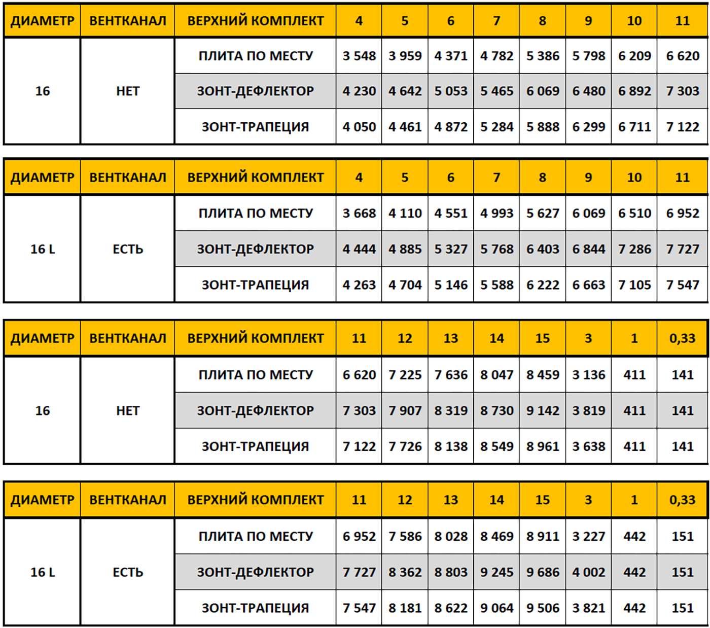 Прайс-лист на комплект системы ISOTOR 16 диаметра: