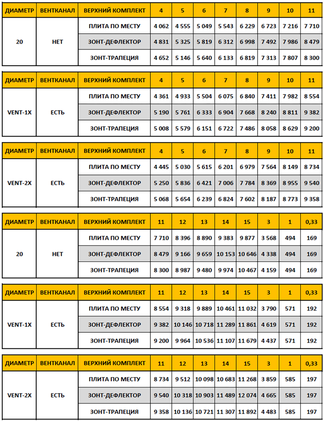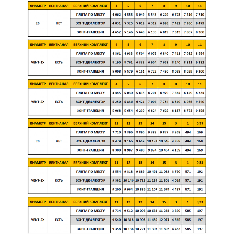 Прайс-лист на комплект системы ISOTOR 20 диаметра: