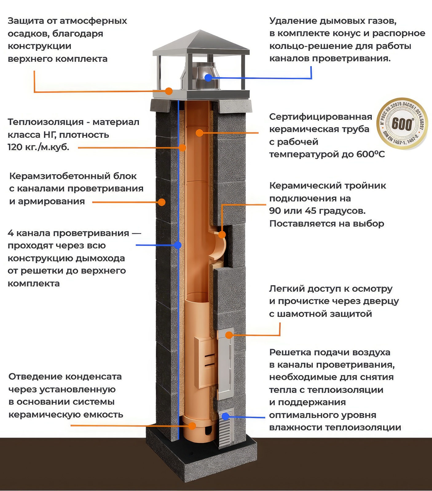 , коттеджей, бань, а также для профессиональных строителей. Если вам нужен надежный дымоход для печи, камина, каминной топки, котла, комплект керамического КераСтиль Универсал D 180 мм станет лучшим выбором!