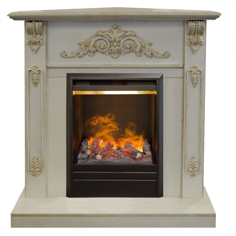 Каминокомплект Anita AO (угловой) с Olympic 3D в классическом стиле. Обрамление камина Anita из МДФ в цвете беленый дуб.