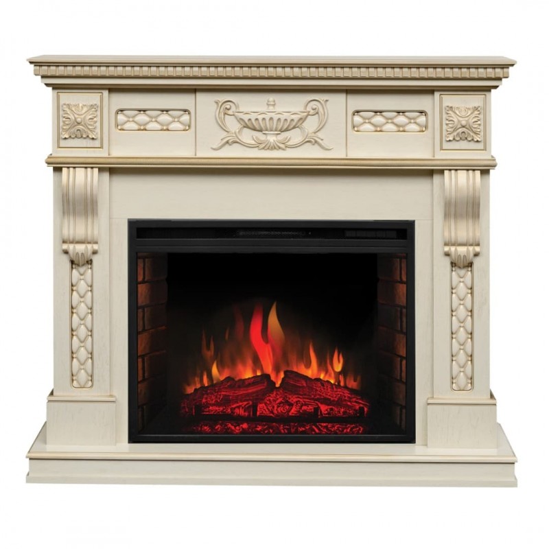 Электрокамин в сборе. Классический стиль, материал - МДФ, покрытый ПВХ-плёнкой. Цвет беленый дуб.