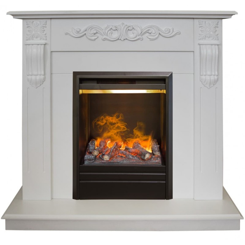Обрамление Dominica в цвете белый матовый WTM-F511 , изготовлен из МДФ +пленка ПВХ. Электроочаг Olympic с эффектом живого огня. Декоративный режим дополнен возможностью работы с обогревом, мощностью 0,75 или 1,5 кВт. В режиме работы пламени - 150 Вт (4 галогеновых лампы по 35 Вт) Имеется регулировка высоты пламени, в том числе с пульта. Эффектный классический стиль обрамления подойдёт для различных интерьеров.