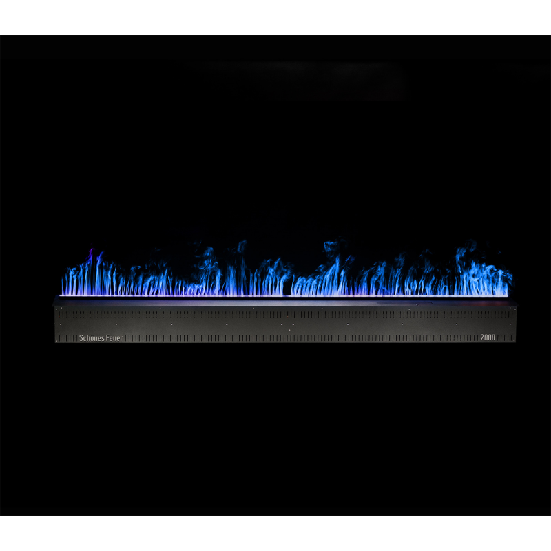 Синяя подсветка, которую можно приобрести дополнительно, придает пламени особый цвет, пламя становится таким, как будто горит голубое топливо, язычки пламени становятся с розово-синем оттенком. Выглядит это необычно и очень красиво.