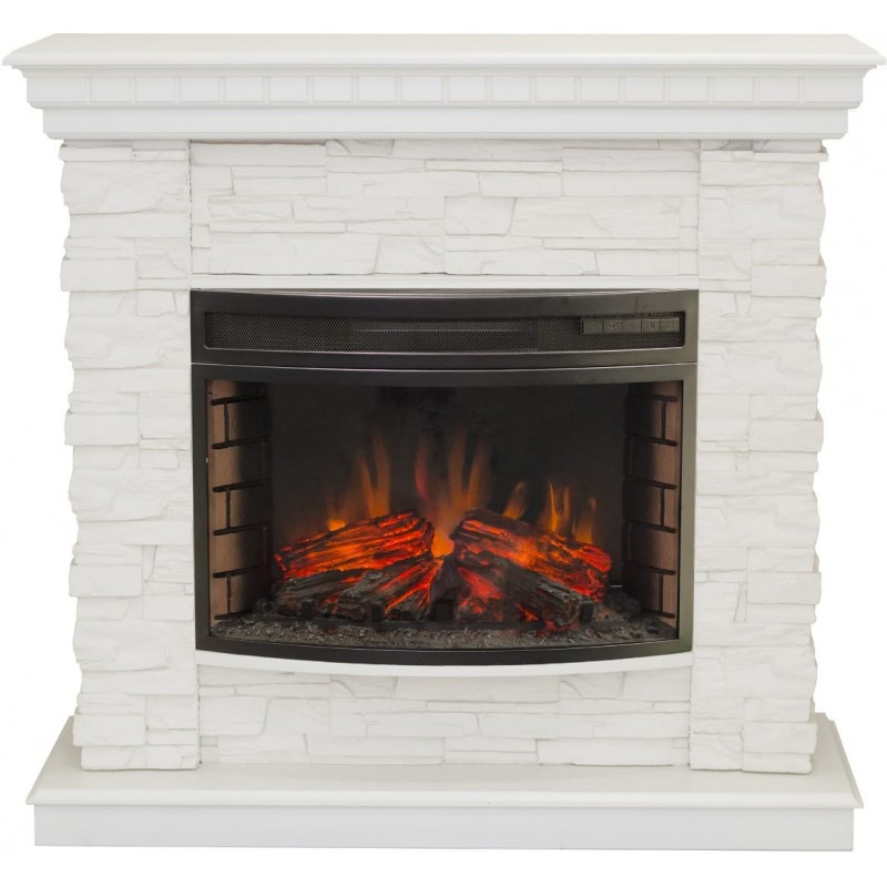 Электрокамин изготовлен из шпонированного МДФ (цвет покрытия: белый дуб) и литого камня. Портал отличается простыми геометрическими формами, лаконичным дизайном, что привлекатет к себе взгляд и подойдёт для интерьеров различных стилей. Каминокомплект оснащён очагом с инфракрасным обогревом FireField 25 SIR. Очаг с панорамным стеклом, имеет 5 визуальных режимов, 6 режимов обогрева. Также возможна эксплуатация без обогрева.