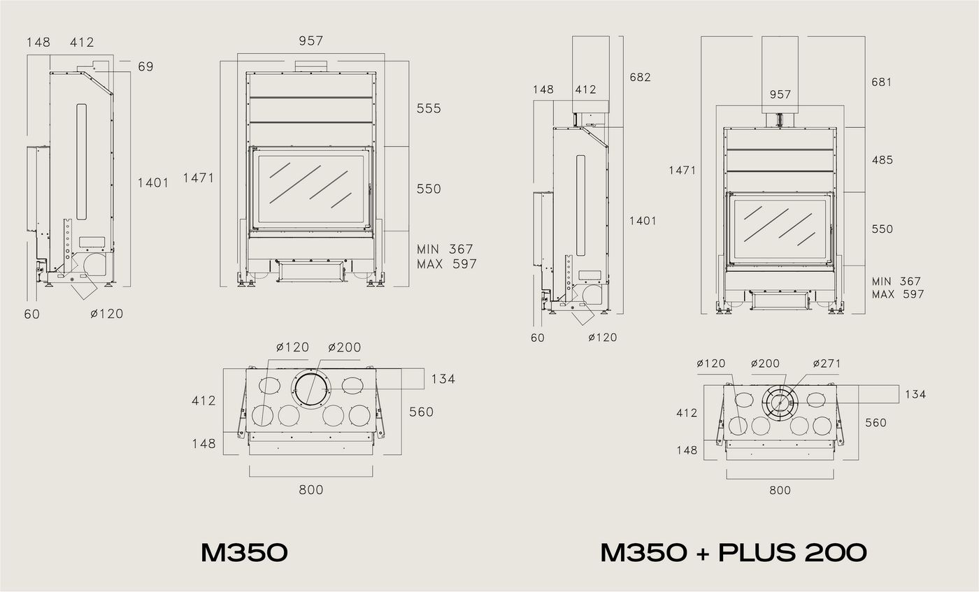 - Диаметр дымохода:200 мм