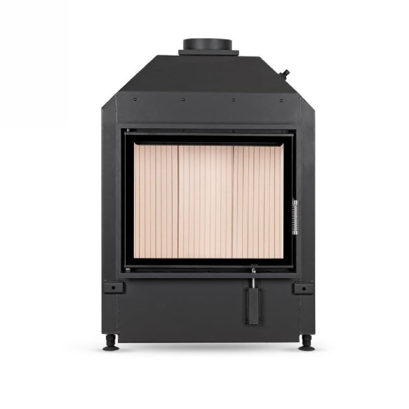 Каминная топка изготовлена из стали, изделие можно использовать для создания теплоемких облицовок, также имеется возможность подключения системы управления горением.