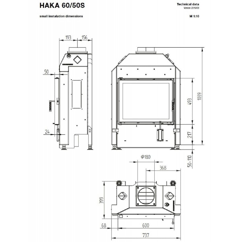 Габаритные размеры Каминная топка HAKA 60/50S