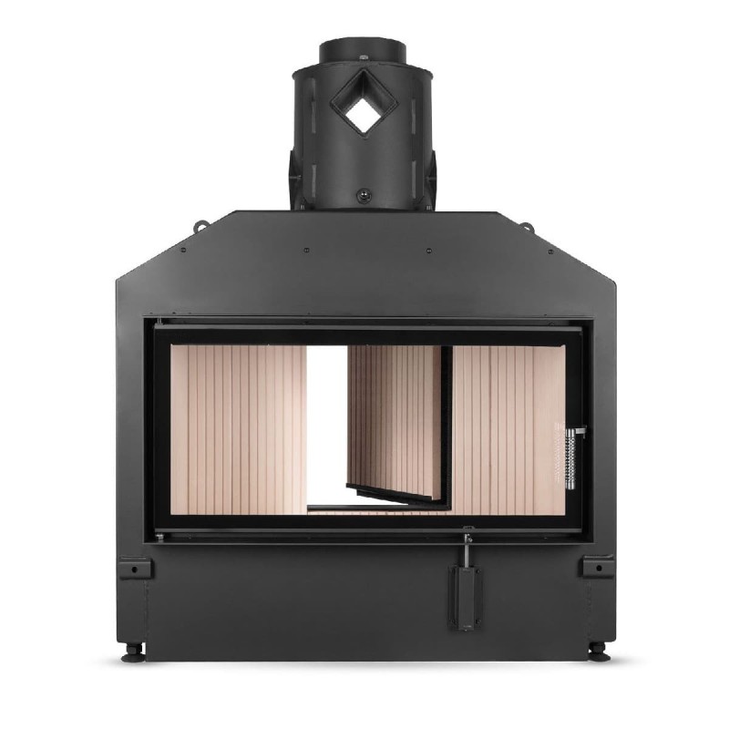 Каминная топка изготовлена из стали, изделие можно использовать для создания теплоемких облицовок, также имеется возможность подключения системы управления горением.