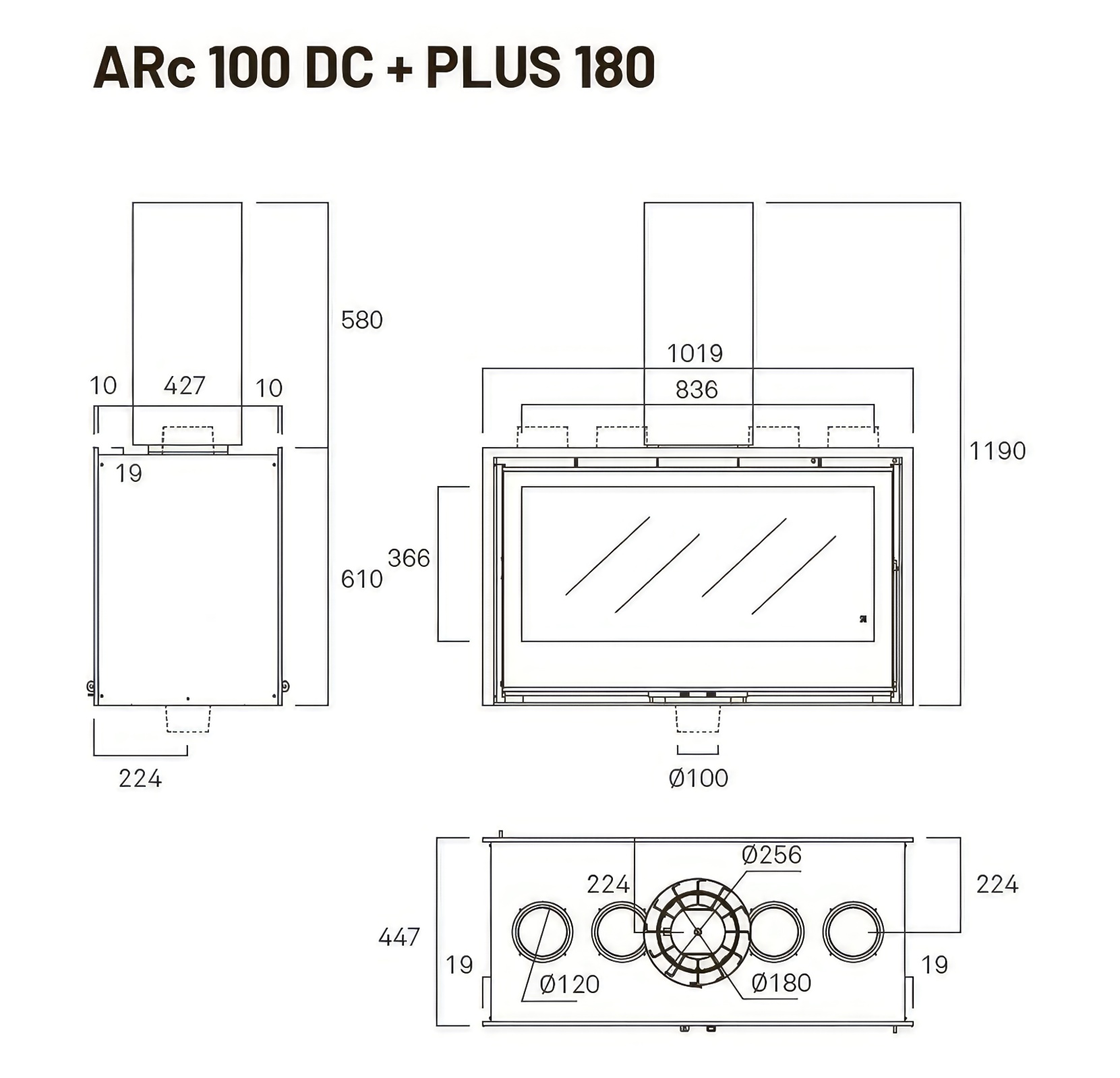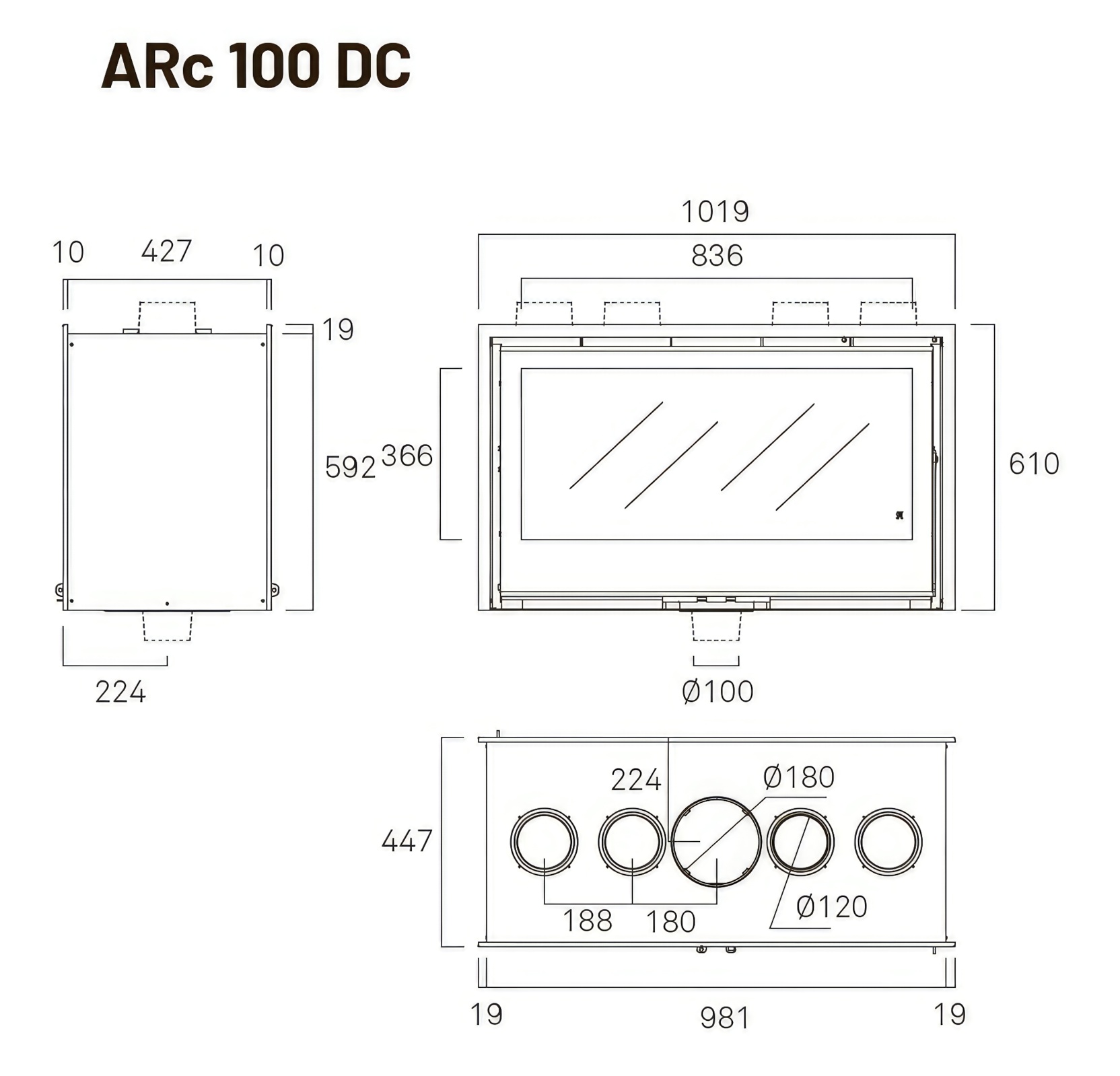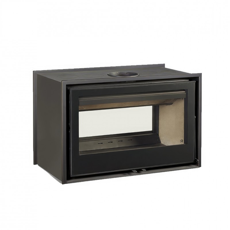 Каминная топка Rocal ARc 100 DC — это двусторонняя (туннельная) модель испанского производителя Rocal с шириной около 1 м, предназначенная для установки в перегородках и обогрева помещений до 300–450 м³ в Минске или других регионах Беларуси. Она работает на дровах, имеет стальной корпус с футеровкой из вермикулита, сквозное прямое остекление и боковое открывание двери (реверсивное, влево/вправо).
