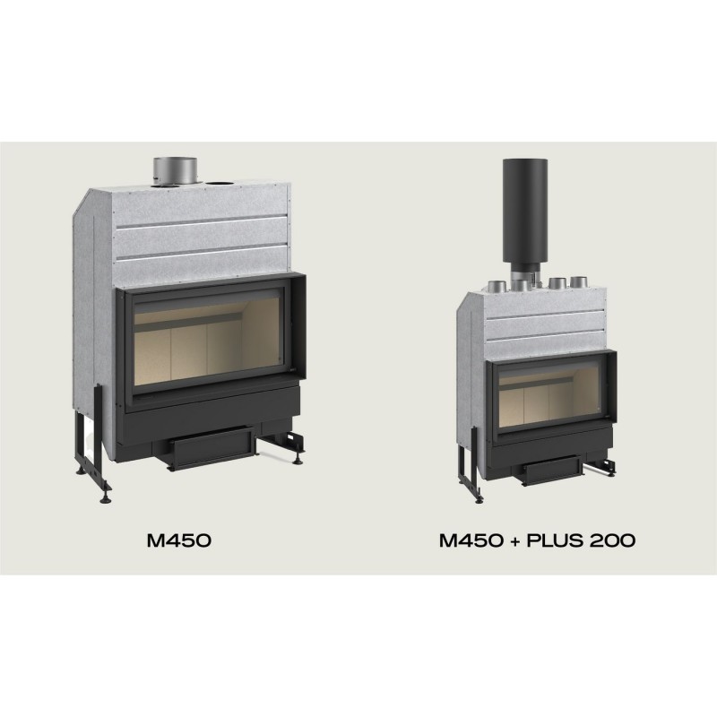 Rocal M450 — это современная каминная топка из серии M2120, сочетающая в себе высокую мощность, стильный дизайн и экологичность. Благодаря номинальной мощности 15 кВт и КПД 78%, модель способна эффективно обогреть до 190 м² жилой площади, обеспечивая уют и тепло даже в просторных помещениях. Топка соответствует европейскому стандарту Ecodesign 2022, имеет класс энергоэффективности A и сертификацию UNE EN-13229, что гарантирует её безопасность и экологичность.