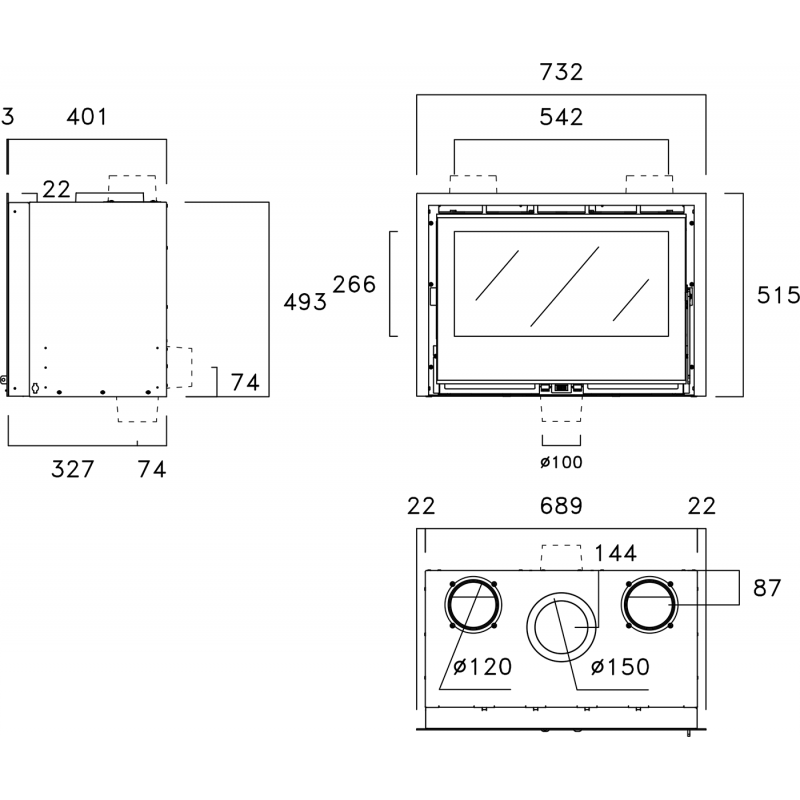 - Диаметр дымохода:150 мм