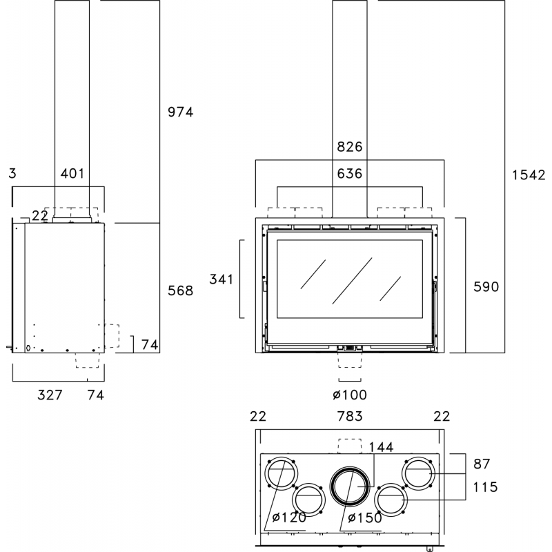 | Высота | 590 мм- без трубы 1542 мм - с трубой |