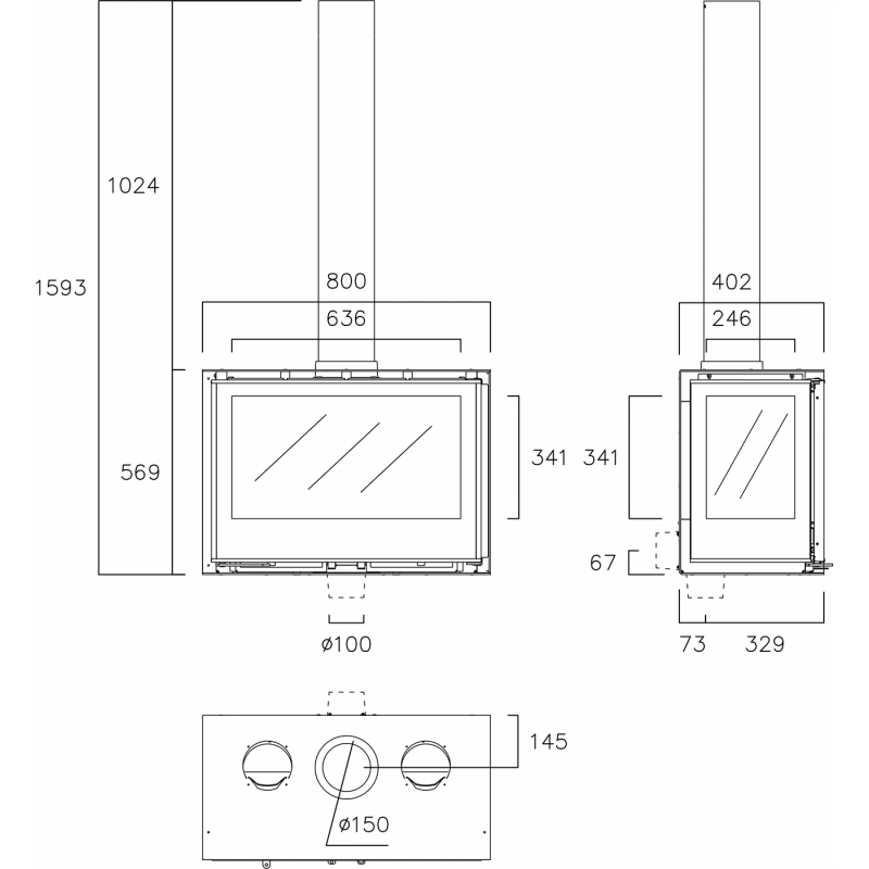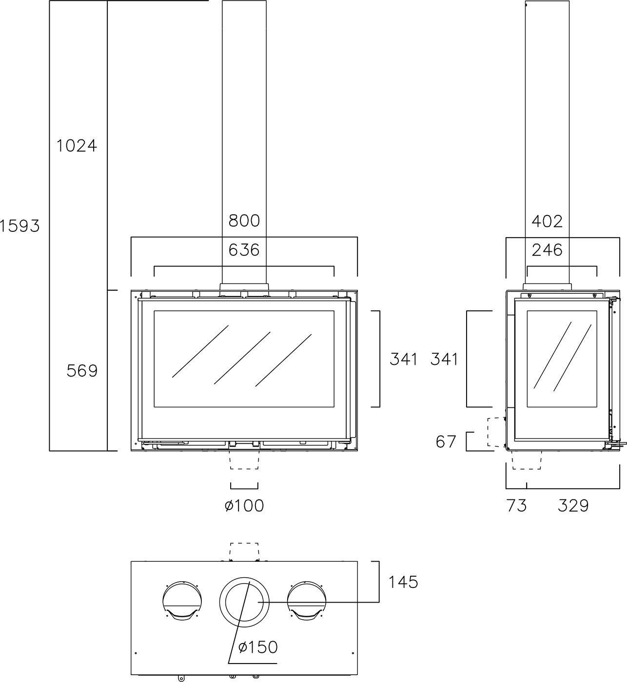 | Высота | 569 мм- без трубы 1593 мм - с трубой |