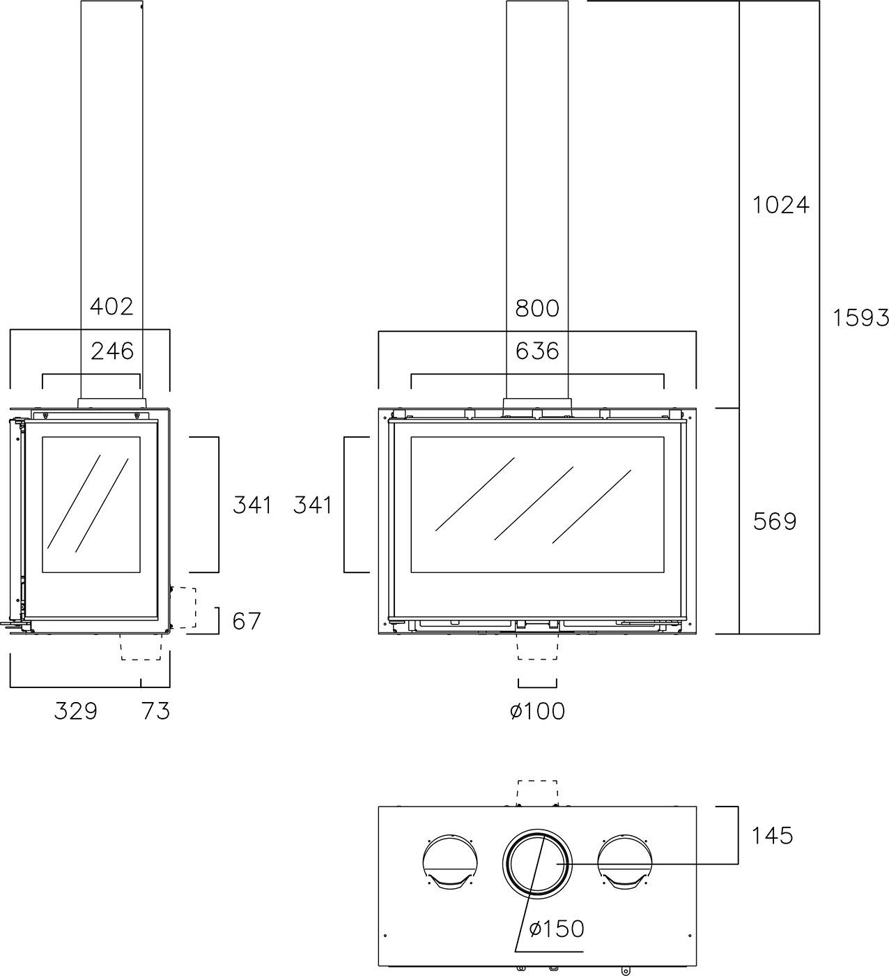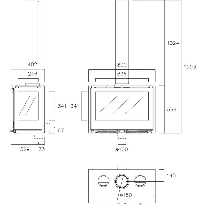 - Диаметр дымохода:150 мм
