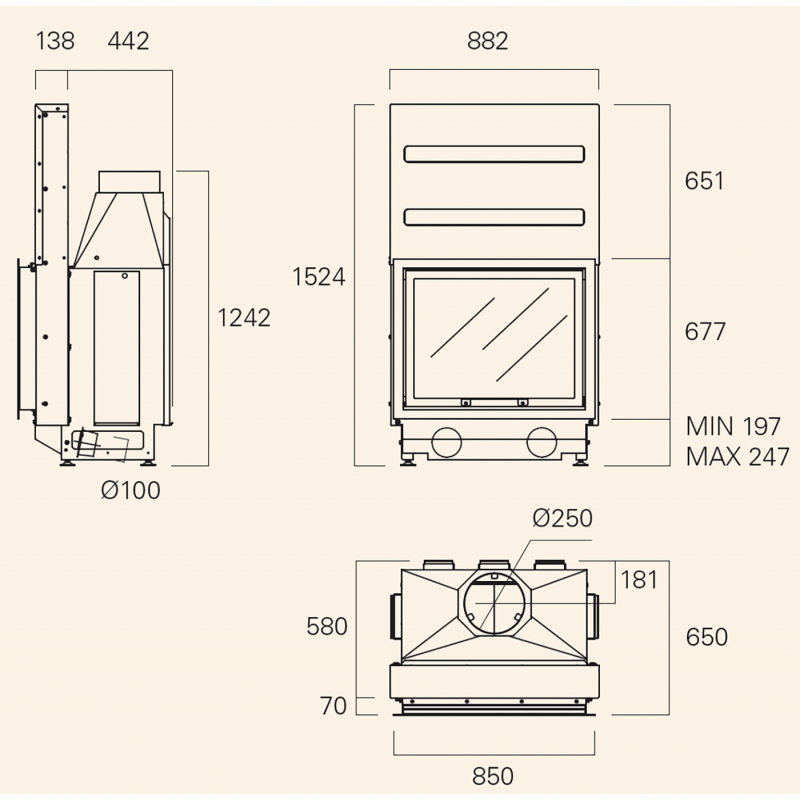 - Внутренняя часть из вермикулита с регулировкой первичного и вторичного воздуха.