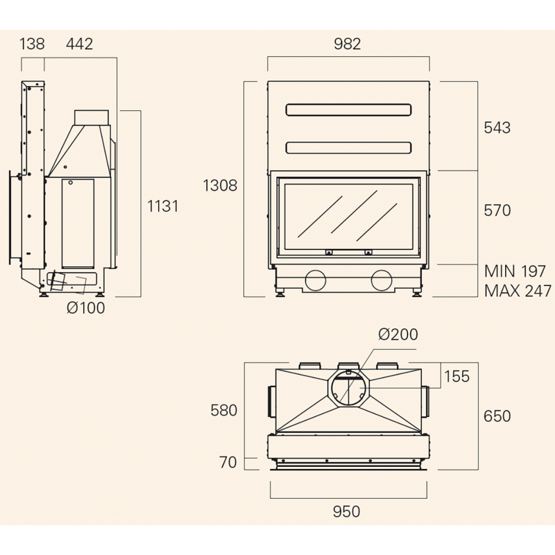 - Диаметр дымохода:200 мм