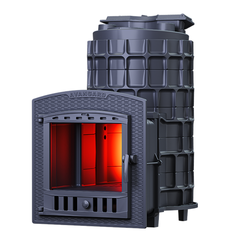 AVANGARD ЗК 35 (П2) Pro - новый концепт чугунной теплонакопительной банной печи с прямым нагревом заряда. Корпус модульный, сборка происходит снизу вверх, модули соединяются по пазогребневой системе. Масса пароиспарителя в печи 75 кг, и он нагревается прямым контактом с пламенем. У пароиспарителя 2 поверхности с увеличенной рабочей площадью – снизу идёт нагрев огнём, а сверху поддаётся вода для пара. У печи уникальная, массивная каменка с теплонакопительными воронками, для получения легкого пара.