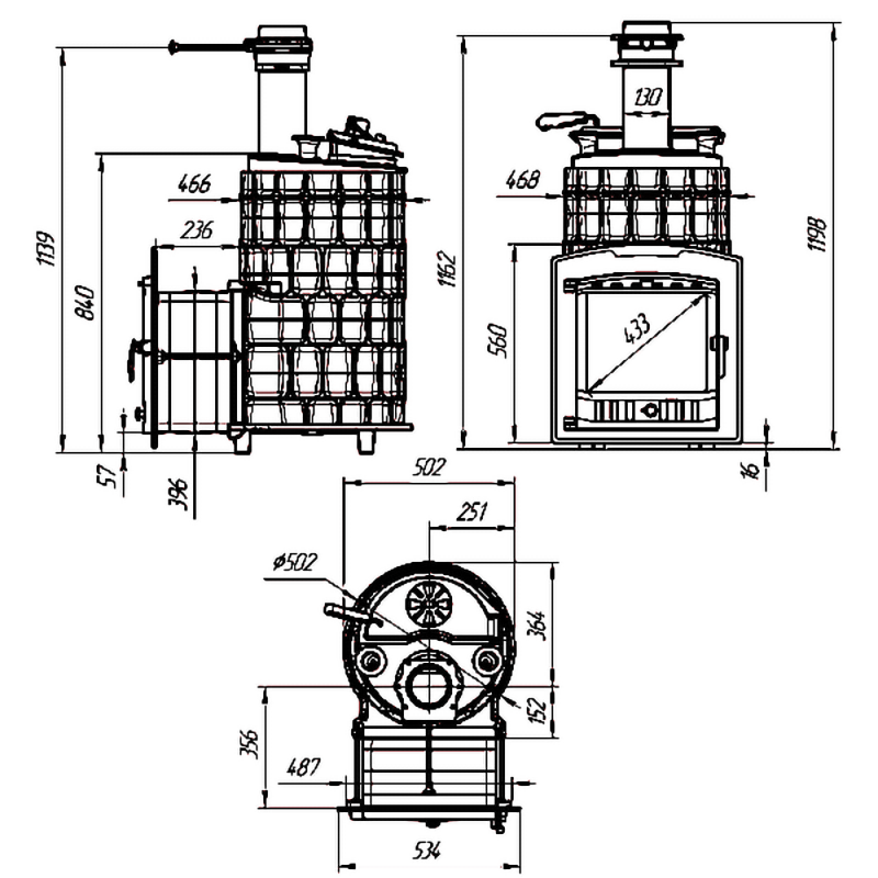 | Диаметр подключения дымохода | 130 мм |