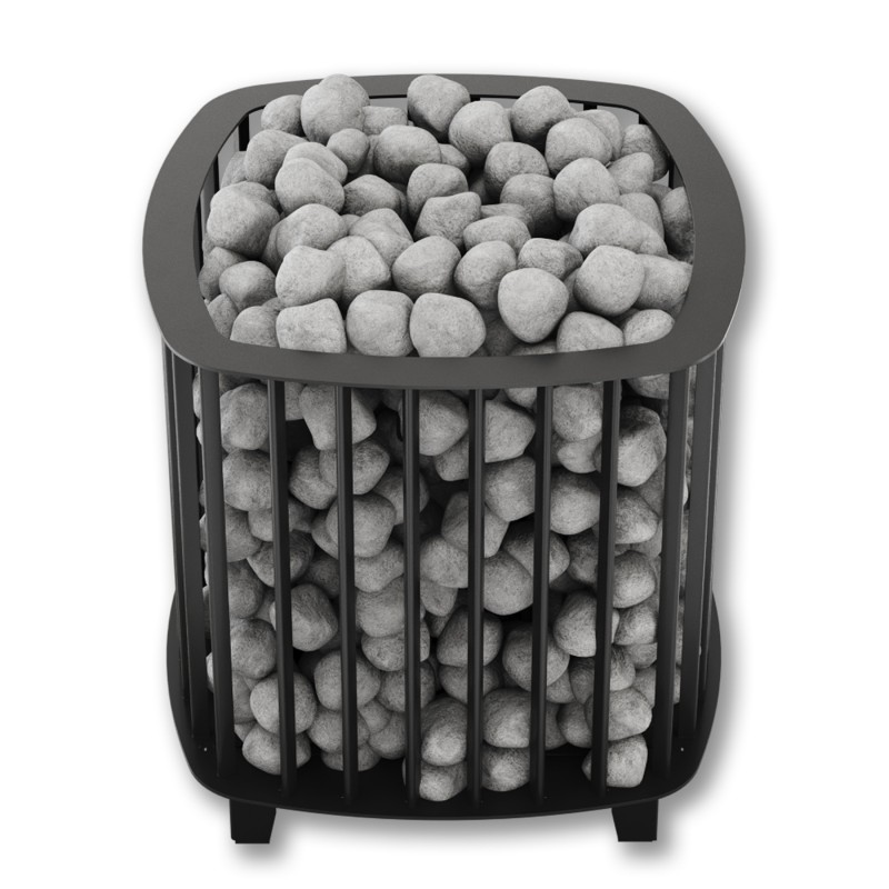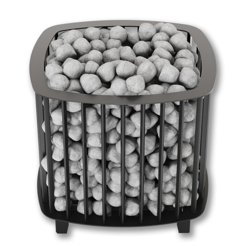 Быстрый прогрев помещения и хороший пар обеспечиваются высокой мощностью нагревательных элементов и большим объемом камней вокруг них.