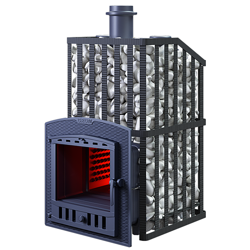 Печи линейки «Гром» имеют в комплекте чугунный короб для установки на каменку и чугунную стартовую трубу длиной 500 мм. Увеличенная масса, толщина боковых стенок 14 мм повышают надежность и теплоаккумулирующую способность, а для быстрого нагрева парной боковые стенки оборудованы конвекционными ребрами не только снаружи, но и на внутренней поверхности.