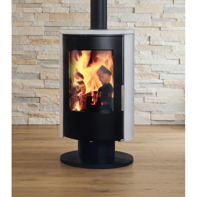 Минималистичный цилиндрический корпус в черном цвете идеально вписывается в интерьеры в стиле Hi-Tech, Loft или Скандинавия. Верхнее подключение дымохода делает монтаж аккуратным и компактным.