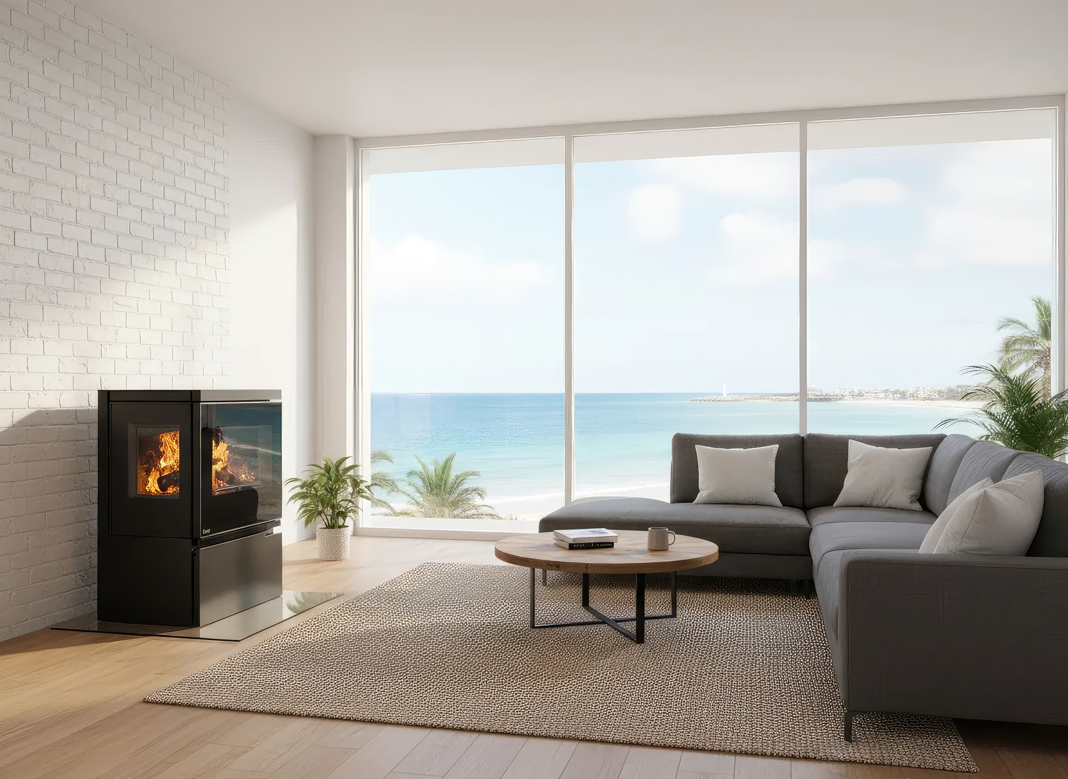 Корпус из высококачественной котловой стали дополнен инновационной системой вторичного дожига, которая дожигает дымовые газы, повышая КПД до 82% и делая стекло кристально чистым. Внутренняя футеровка из вермикулита высокой плотности защищает металл и создает яркое, объемное свечение внутри топки.