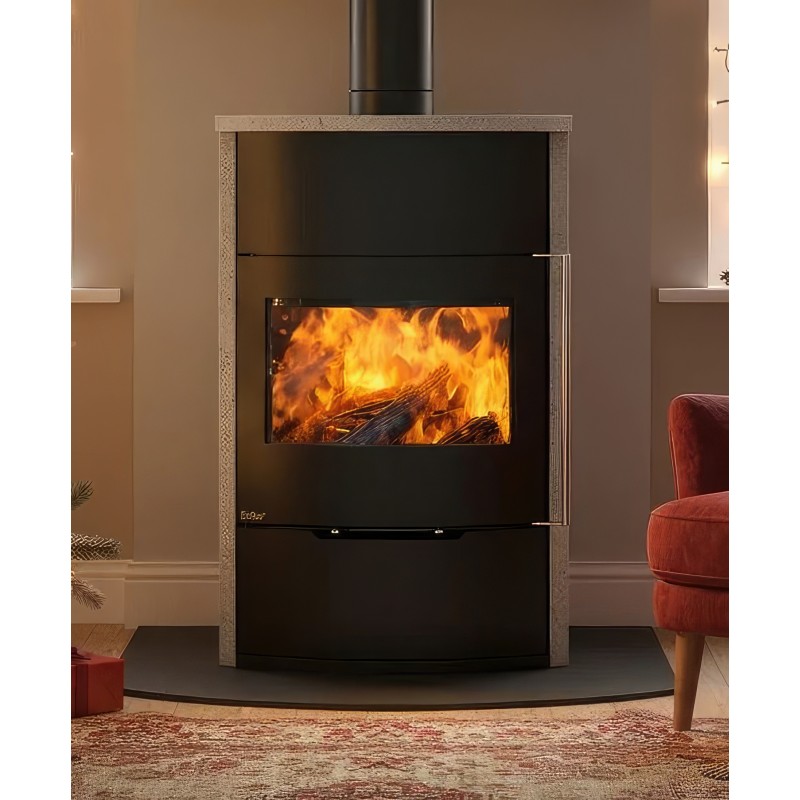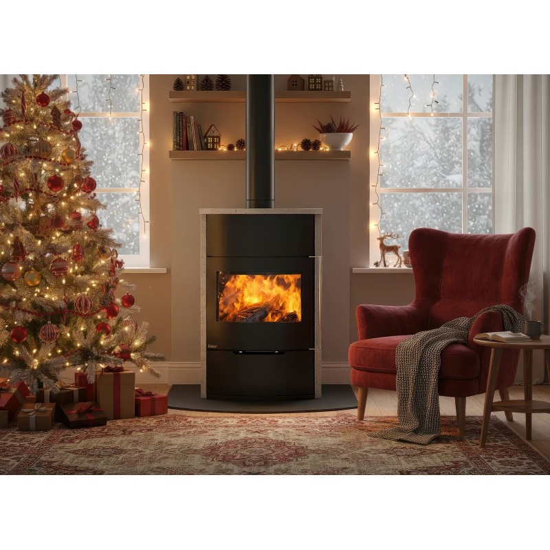 Ember O2 выполнена из высокопрочной котловой стали с внутренней футеровкой из вермикулита. Модель поддерживает систему внешнего подвода воздуха (CPV), что позволяет подключать забор кислорода через стену или пол. Это делает эксплуатацию камина комфортной и безопасной даже в домах с активной принудительной вентиляцией.