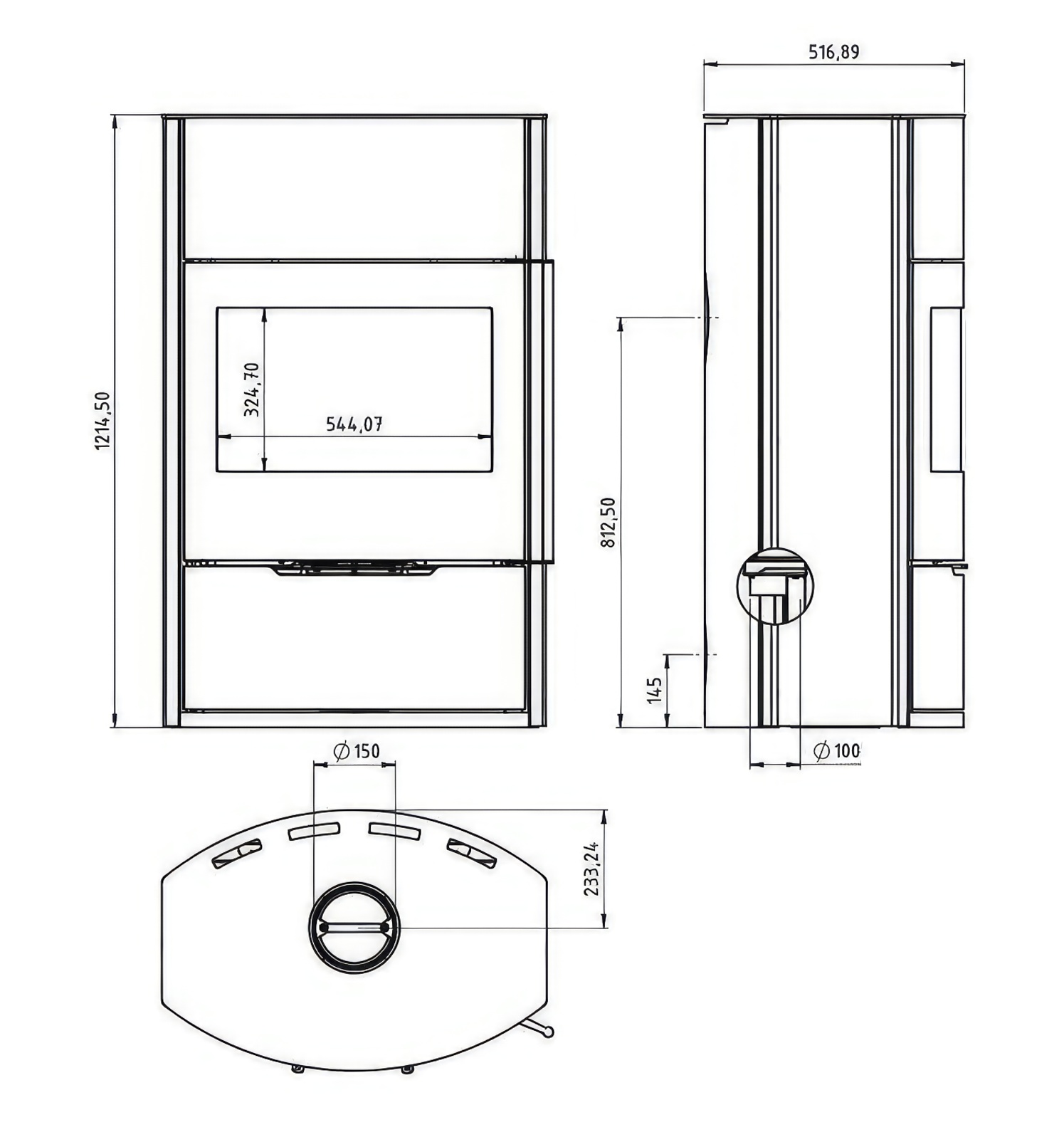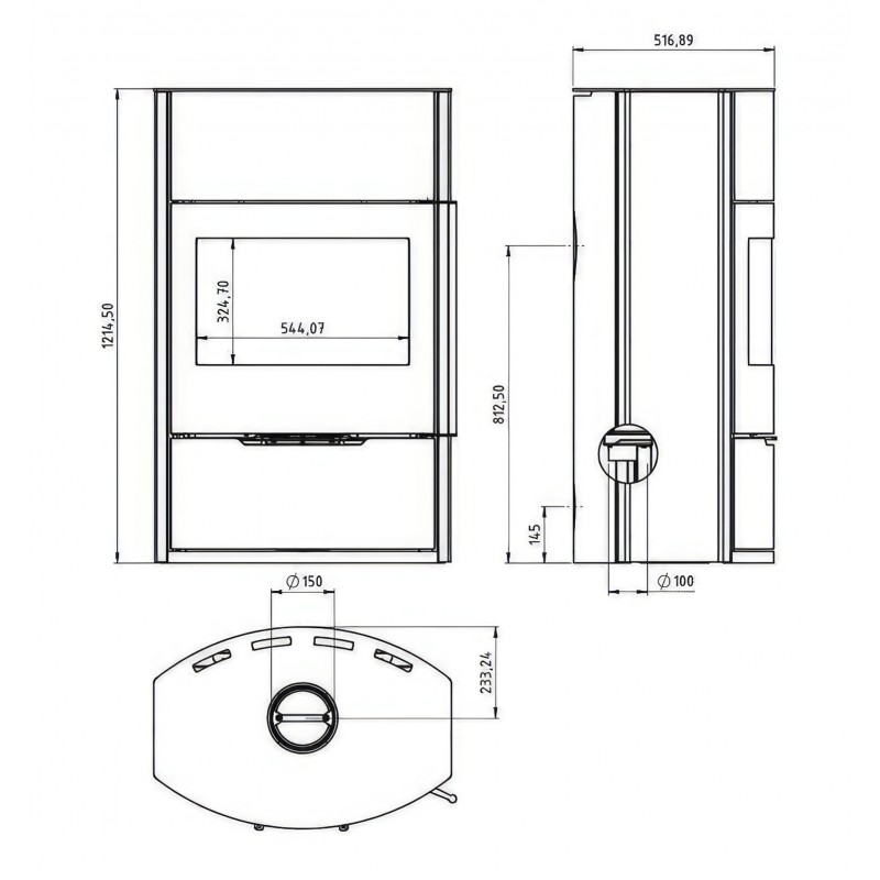 - Диаметр дымохода:150 мм