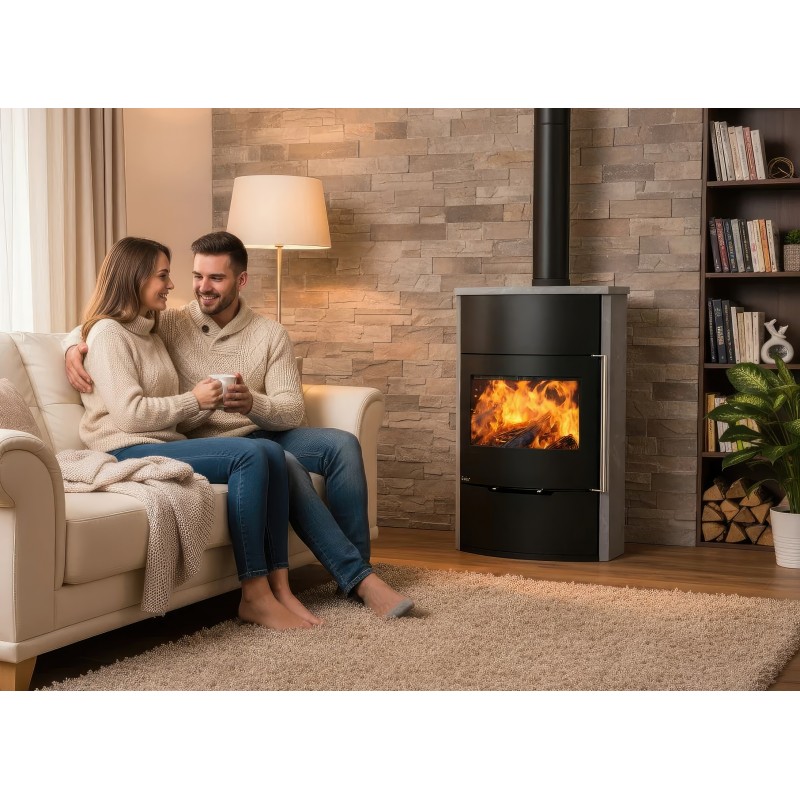 - Высокая теплоэффективность: При компактных размерах печь выдает 7 кВт мощности, что достаточно для основного или дополнительного отопления гостиной до 70 м².