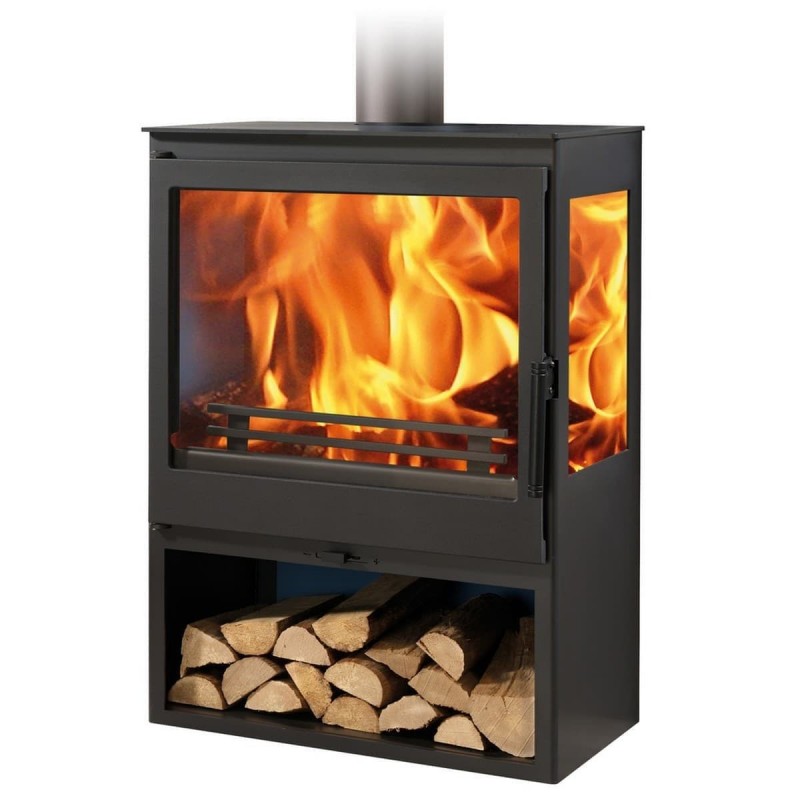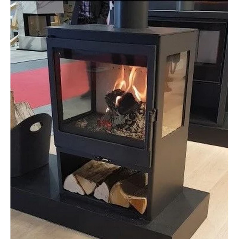 Конструкция топки обеспечивает красивое горение пламени. Регулировка интенсивности горения осуществляется всего одним простым и удобным регулятором. Камин имеет вместительный встроенный отсек для дров.