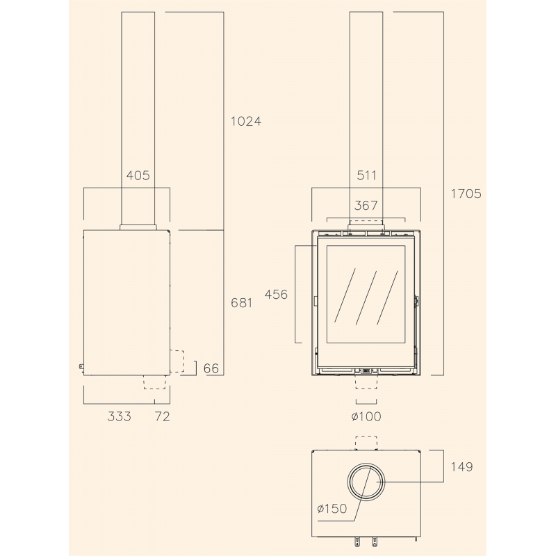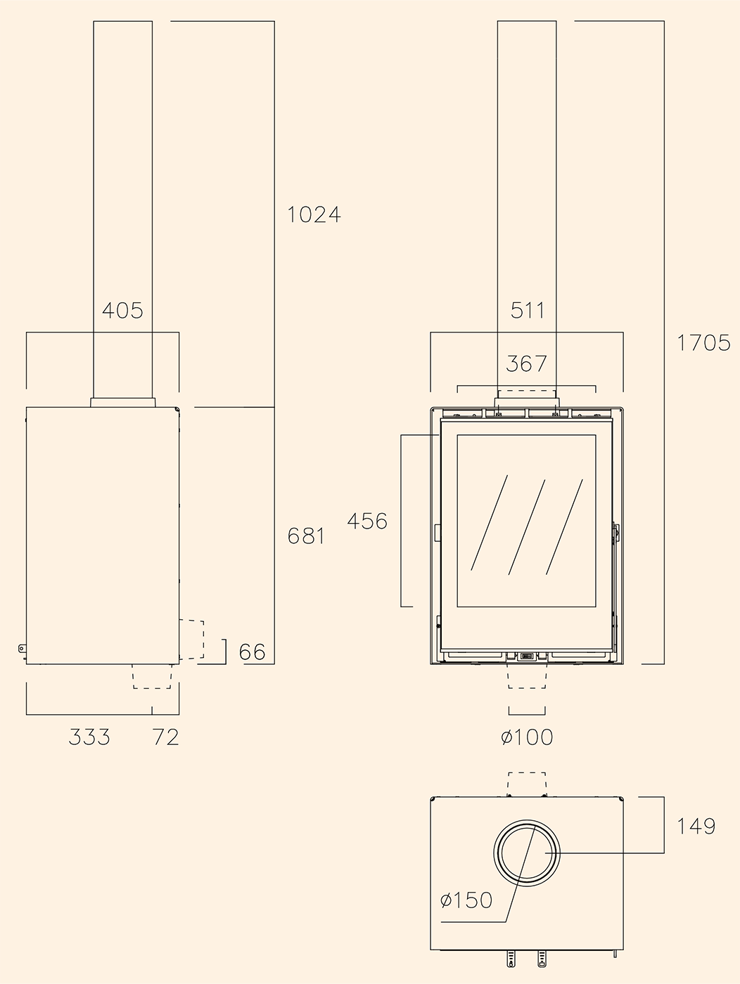 | Высота | 681 мм - без трубы; 1705 мм - с трубой |