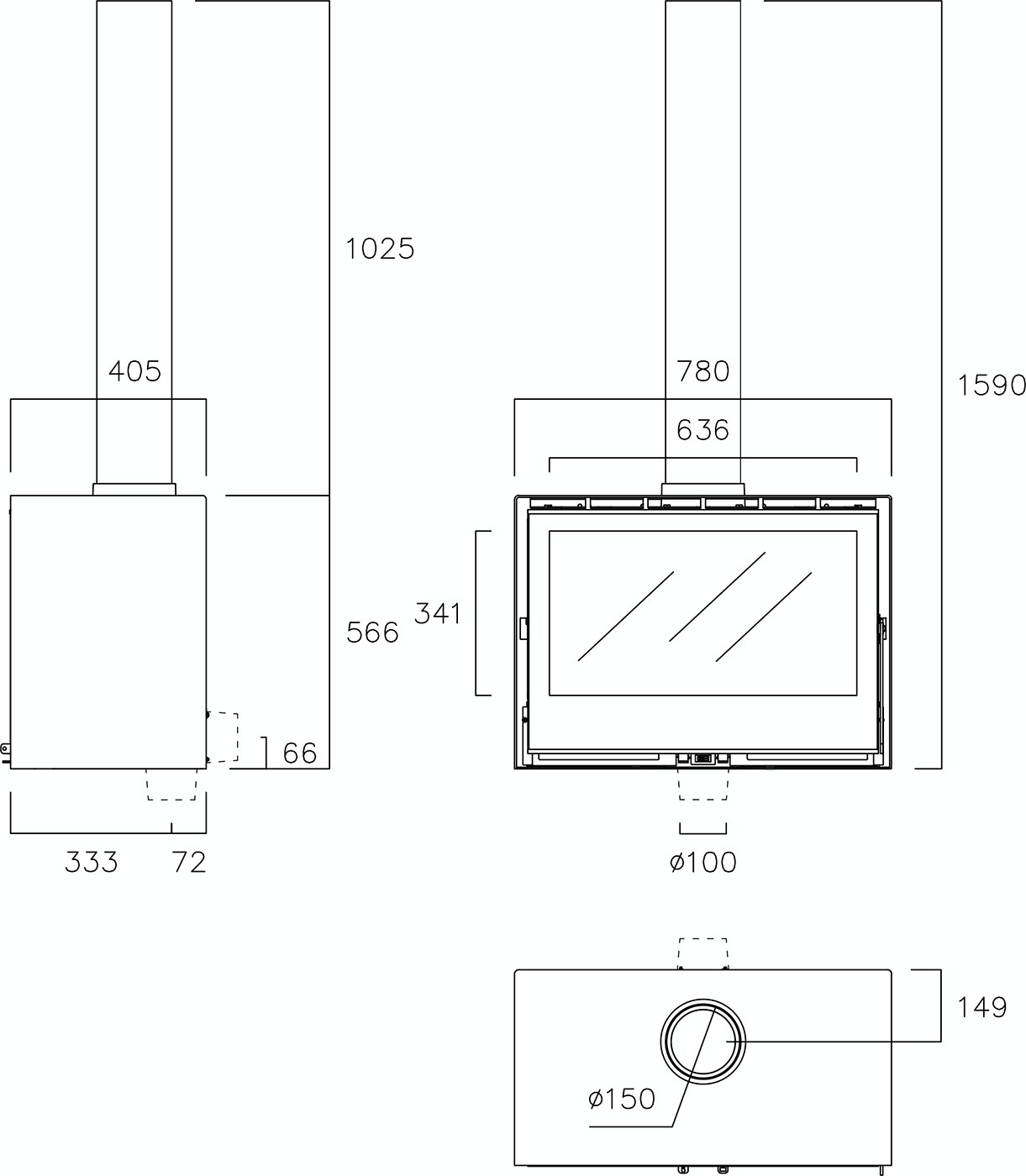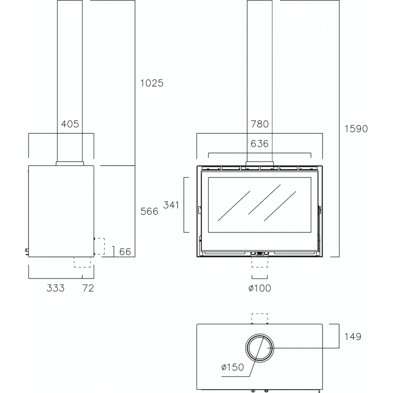 - Диаметр дымохода:150 мм