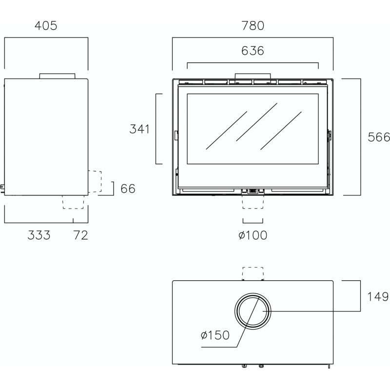 - Диаметр дымохода:150 мм