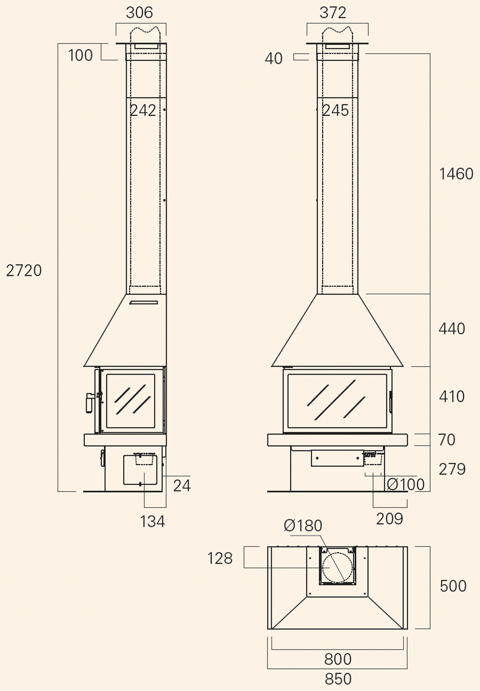 - Диаметр дымохода:180 мм
