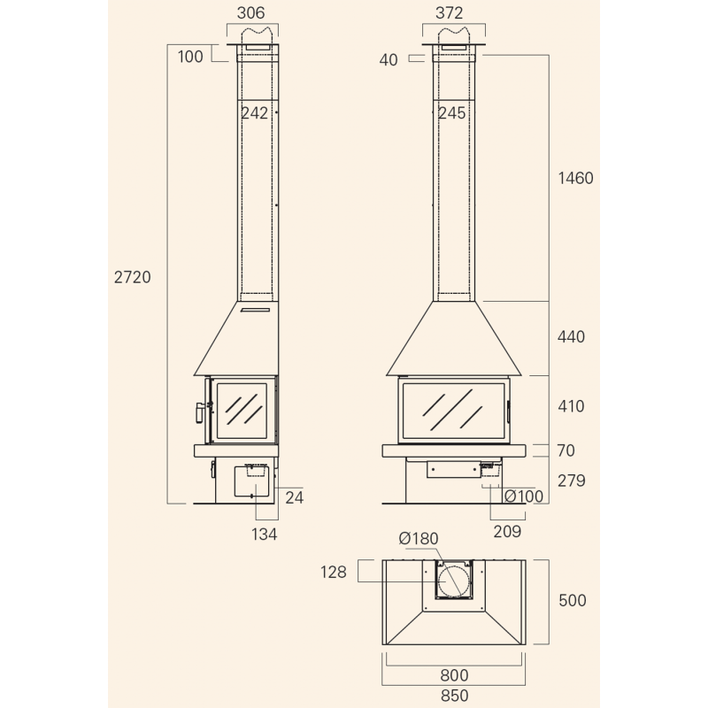 - Диаметр дымохода:180 мм