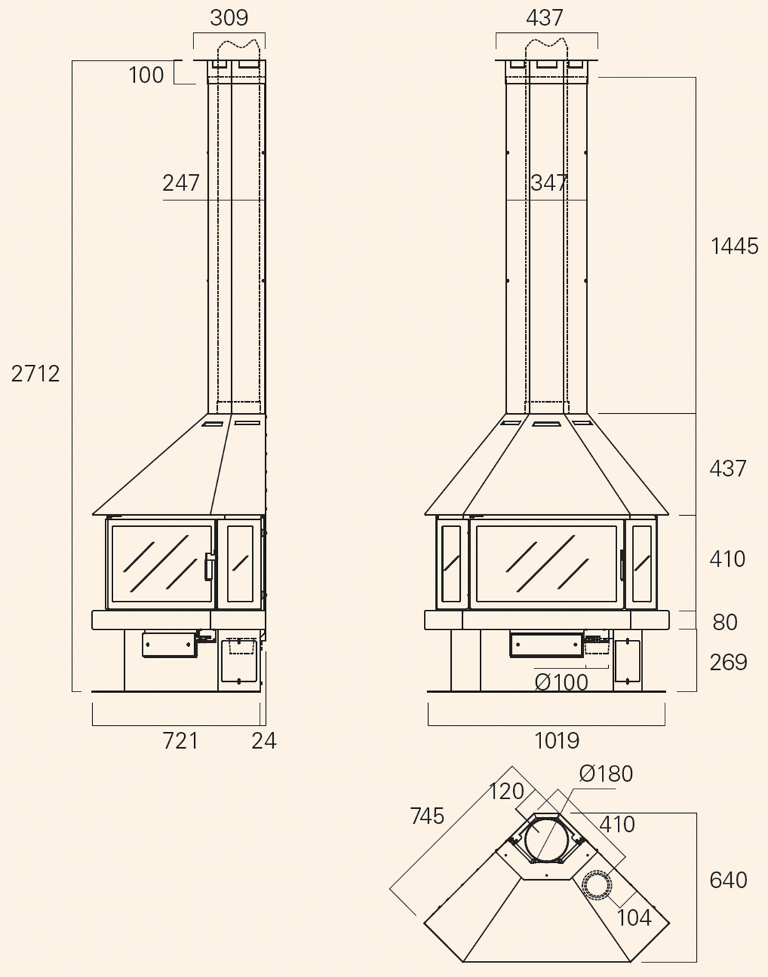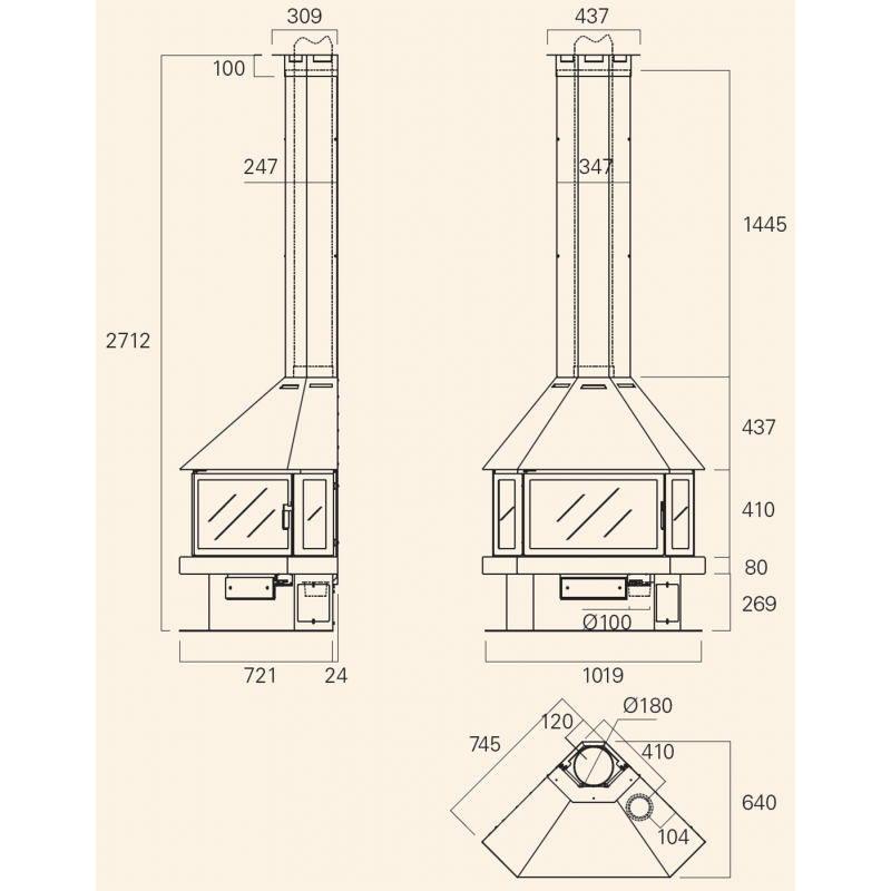 - Диаметр дымохода:180 мм