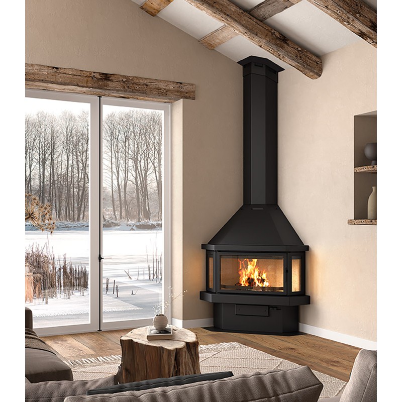 Печь камин LL Calor LL-25 B — традиционный фронтальный камин с вытяжкой традиционного дизайна, изготовлен из стального листа и оснащен стеклокерамическим стеклом, устойчивым к температуре до 750 ºC. Он покрыт термостойкой краской и покрыт вермикулитовыми панелями для большей долговечности.