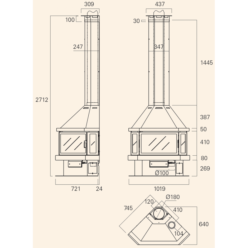 - Диаметр дымохода:180 мм