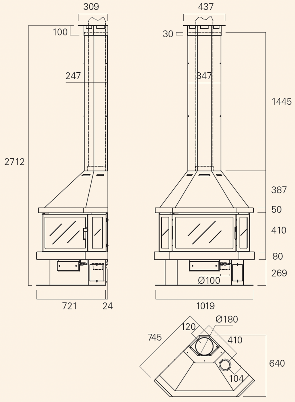 | Диаметр дымохода | 180 мм |