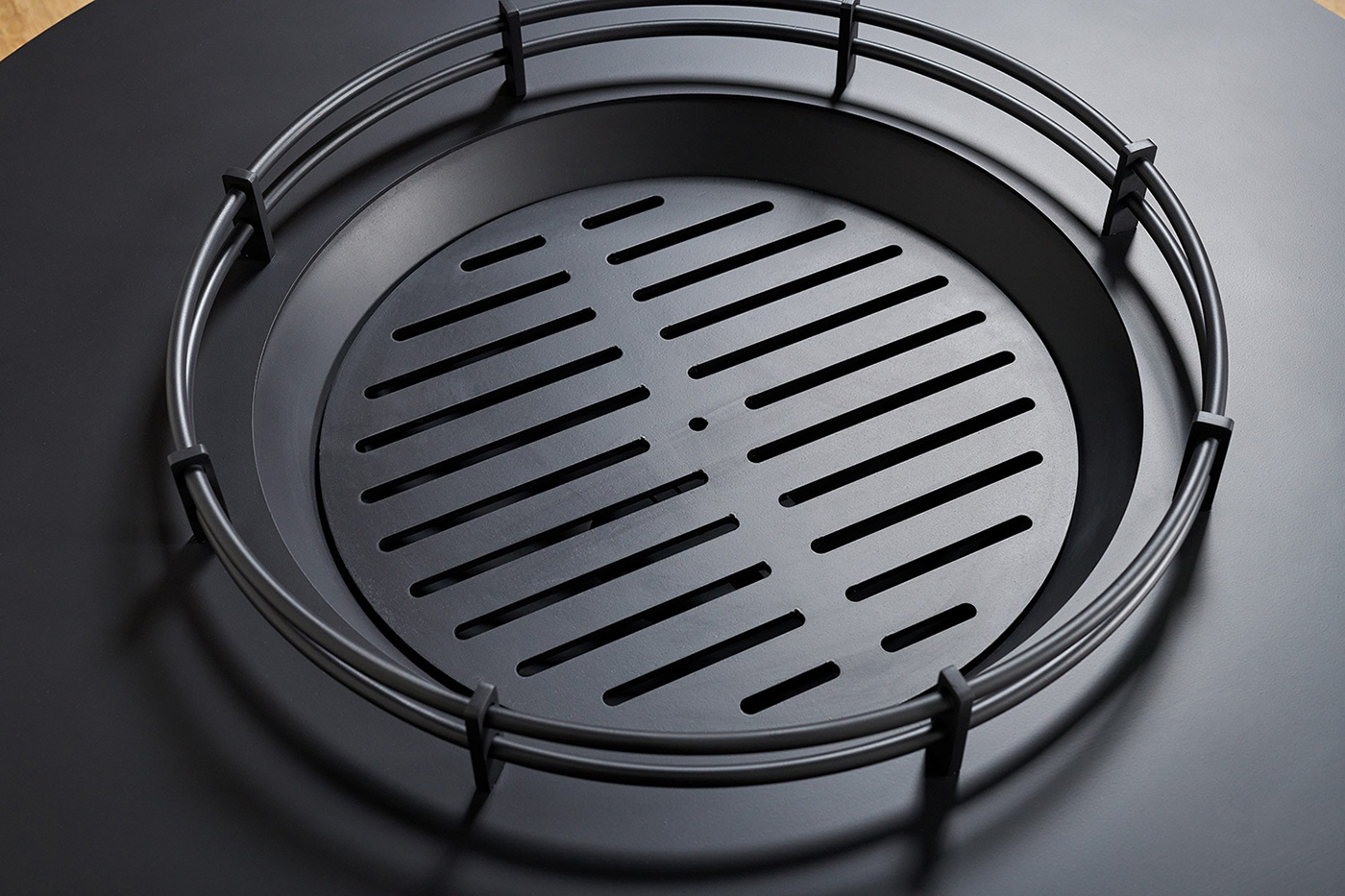 Помимо невероятного дизайна и великолепного обзора пламени, достоинством этого камина является возможность приготовить на нем вкусный ужин.