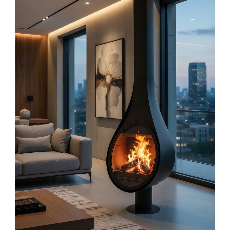 Готовый стальной камин ROCAL Drop (N) на ноге испанского производства с призматическим стеклом - это элегантное и стильное решение для современного интерьера. Чистые и простые линии в сочетании с материалами высочайшего качества делают такой камин не только красивым заверщающим штрихом в обстановке, но и надежным, долговечным источником тепла и уюта.